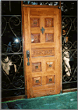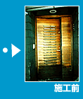 つぎに2液のウレタン樹脂クリヤーを吹付します。刷毛で塗装する場合もありますが、このドアは彫刻の細かい部分が多く刷毛で塗装するとクリヤー塗料が流れて綺麗に仕上がらない可能性がありましたので、吹付仕上げにしました。