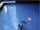 写真右/2回目のウレタン防水材を塗布します。