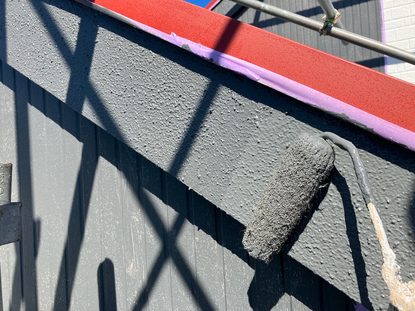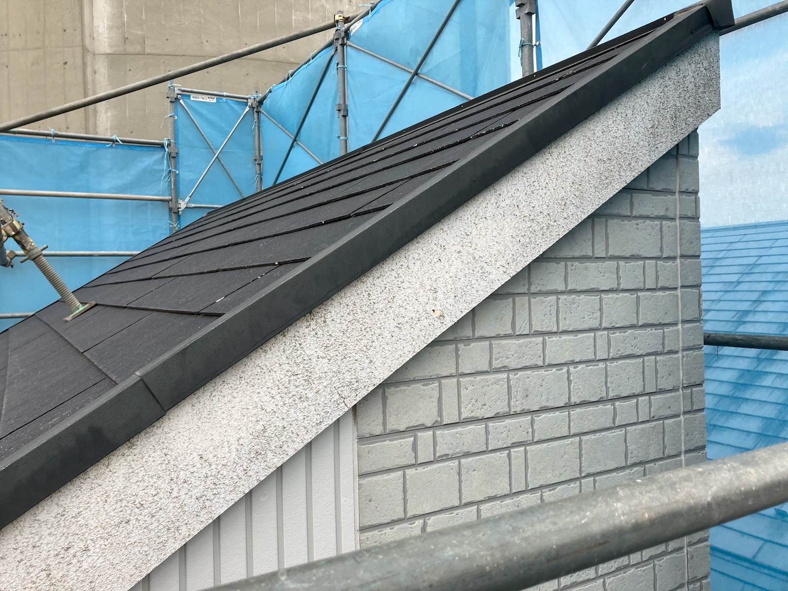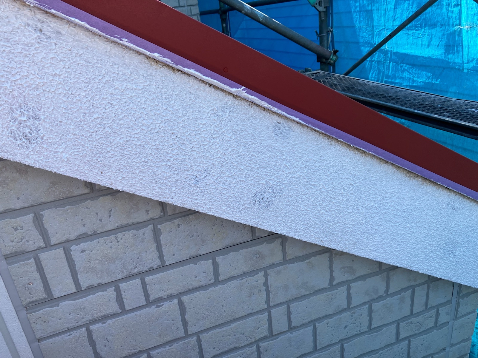 破風板には再度防水性のある主材をゆず肌状に塗り、上塗りを2回塗装しました。