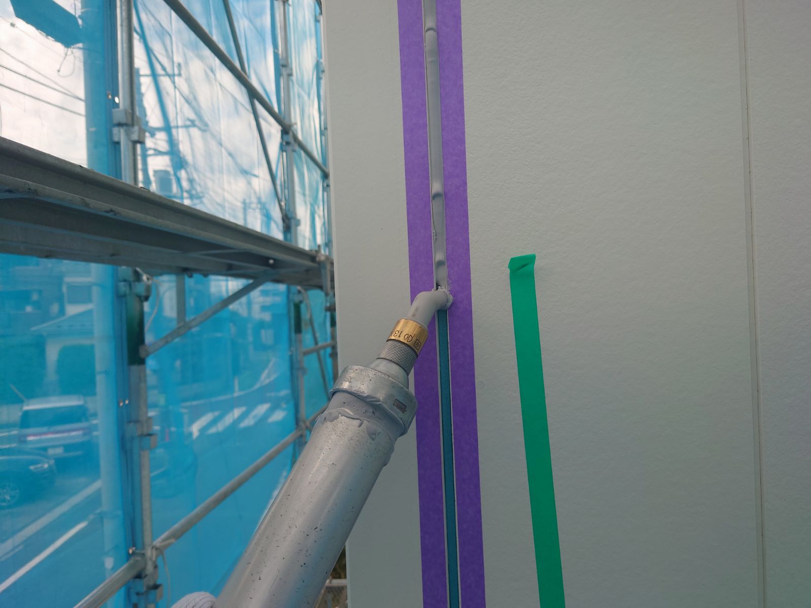 コーキングの乾燥後に外壁の塗装をしました。